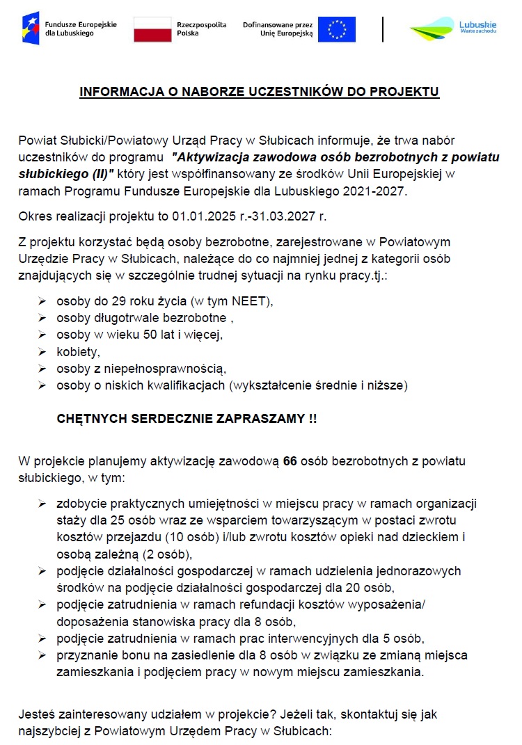 piątek, 12.12.2025 09:56"Aktywizacja zawodowa osób bezrobotnych z powiatu słubickiego (II)"